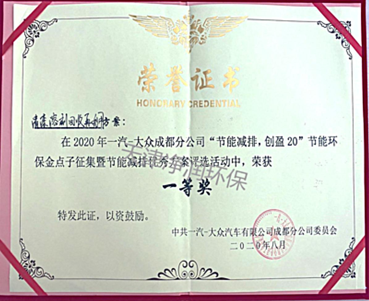 大众节能环保金点子“一等奖”
